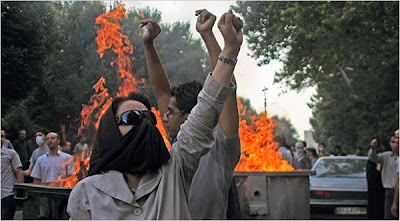 Today is the tenth anniversary of the student riots that took place after basij raided the dormitories of Tehran University. Mousavi had called for protests today, and they are happening - with chants of "Death to the Dictator" and "Death to Khameini's Son." The son of Iran mid-level cleric cum Supreme Guide, Ali Khamini, is now leading the Basij, Iran's brutal version of the Nazi Brownshirts. Meanwhile, our own feckless President and his party are turning their backs on Iran. NIAC is reporting that, "last night, the U.S. Congress shelved a controversial motion to restore $75 million in funding for regime change in Iran." Moreover, Obama, who had taken the wrong-headed stance against imposing any further international sanctions on the theocracy over their fradulent election and brutal repression of their citizens, succeeded - the G-8 went so far as to express their concern. Leadership, eh?